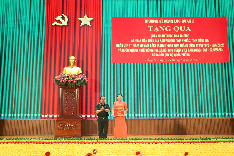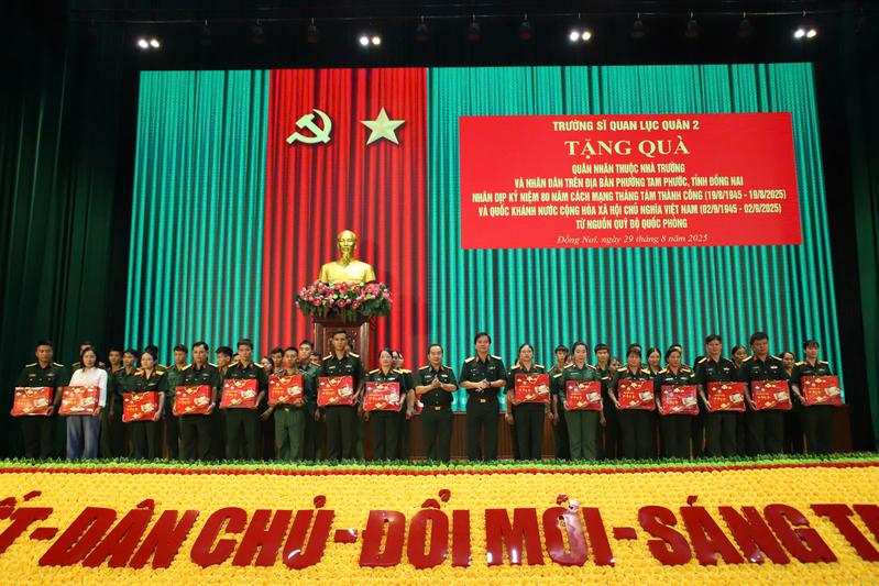 (QK7 Online) - Trong không khí hân hoan, phấn khởi toàn Đảng, toàn dân, toàn quân chào mừng kỷ niệm 80 năm Cách mạng Tháng Tám năm 1945 và Quốc khánh nước Cộng hòa xã hội chủ nghĩa Việt Nam; chiều ngày 29/8, tại tỉnh Đồng Nai, Trường Sĩ quan Lục quân 2 tổ chức thăm hỏi, tặng quà các quân nhân có hoàn cảnh đặc biệt khó khăn, mắc bệnh hiểm nghèo và các hộ nghèo trên địa bàn phường Tam Phước.