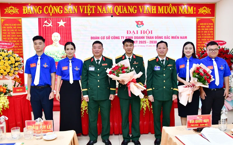 Ban Giám đốc Công ty kinh doanh than Đông Bắc miền Nam tặng hoa chúc mừng Ban chấp hành Đoàn cơ sở nhiệm kỳ 2025-2030 và đại biểu dự hội nghị Tổng kết hoạt động CTĐ&PTTN 23Win99ok tải ứng dụng 19, giai đoạn 2022-2025.